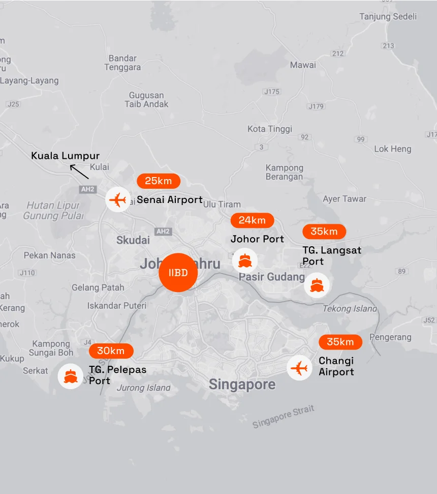 As part of the Johor-Singapore Economic Zone, IIBD is poised to benefit from upcoming infrastructure and cross-border incentives. Business-friendly incentives are available for key business sectors, creating fertile ground for sustainable growth and innovation.